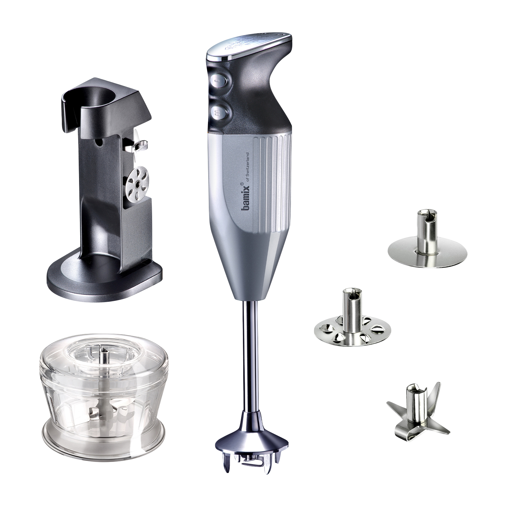 bamix® Deluxe-stavblender med en kraftig 200 watt motor, der sikrer pålidelig hjælp til selv de hårdeste opgaver i køkkenet. Stavblenderen har to hastighedsindstillinger og en praktisk spiralledning, der giver masser af fleksibilitet. Til produktet medfølger multifunktionskniv, blenderskive, piskeskive, kværn og bordstand samt en instruktionsmanual. Livstidsgaranti på motor.
