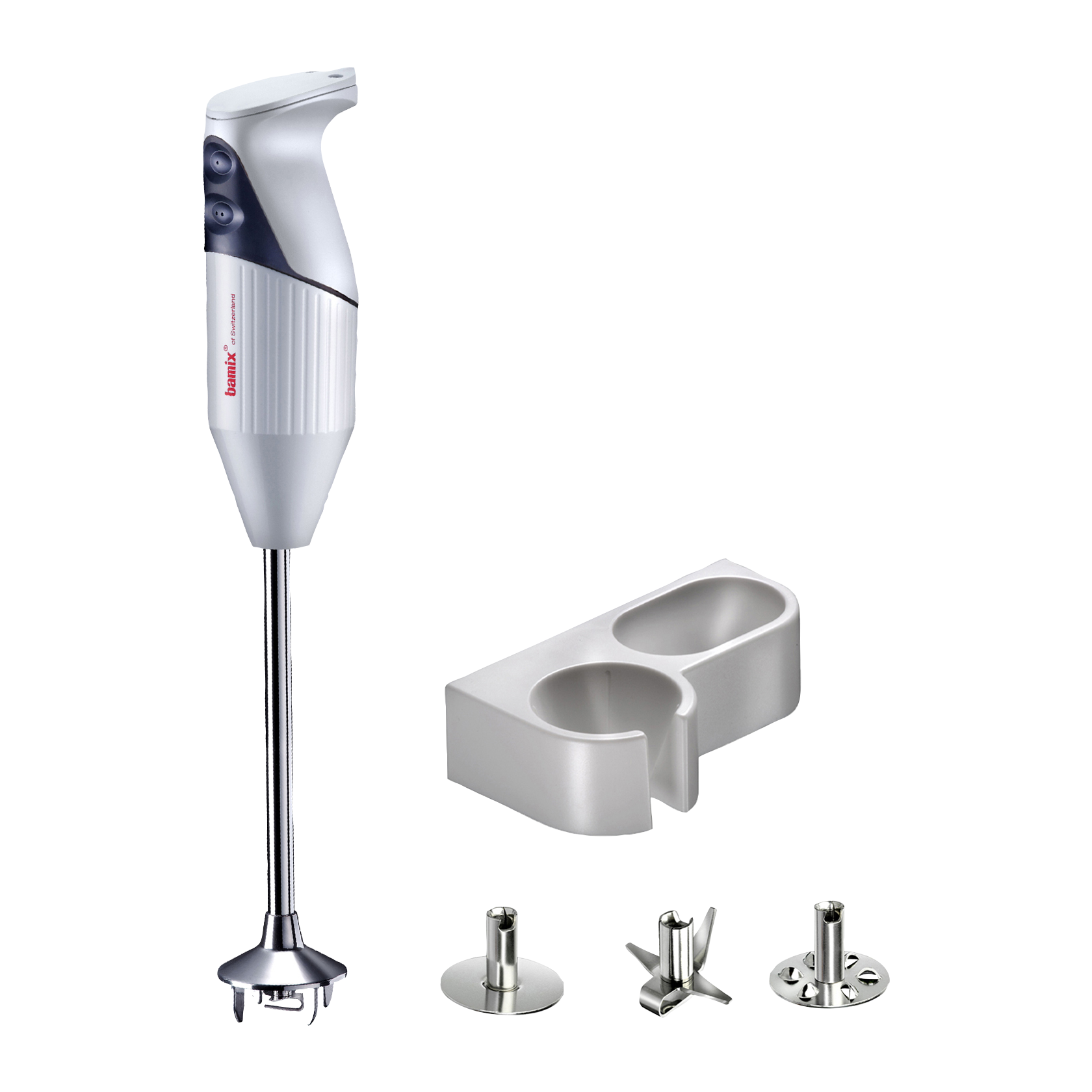 bamix® Gastro Pro-3-stavblender med en kraftig 350 watt motor, der sikrer pålidelig hjælp til selv de hårdeste opgaver i køkkenet. Stavblenderen har to hastighedsindstillinger, softgrip-sikkerhedsknap og en mixerdel på 39 cm, som kan komme under vand, hvilket gør stavblenderen perfekt til professionelle køkkener. Til produktet medfølger multifunktionskniv, blenderskive, piskeskive, vægholder samt en instruktionsmanual. Livstidsgaranti på motor.