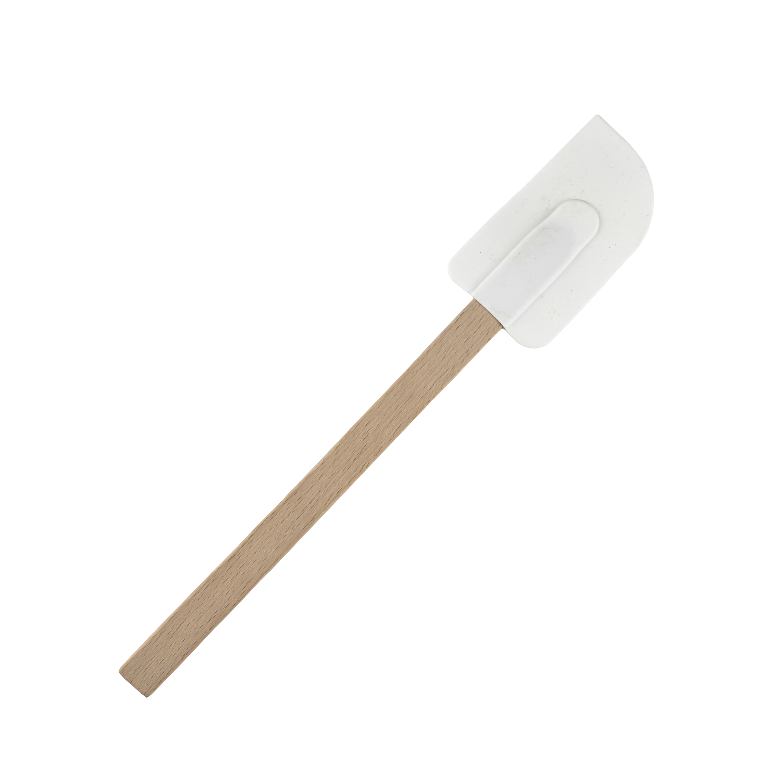 30 cm lang dejskraber med skaft i ubehandlet bøgetræ og skrabelæder i silikone. Brug dejskraberen til at tømme fade og skåle helt, så intet går til spilde, eller til at sprede fyldet jævnt ud i en form og dekorere kager. Håndopvask anbefales.