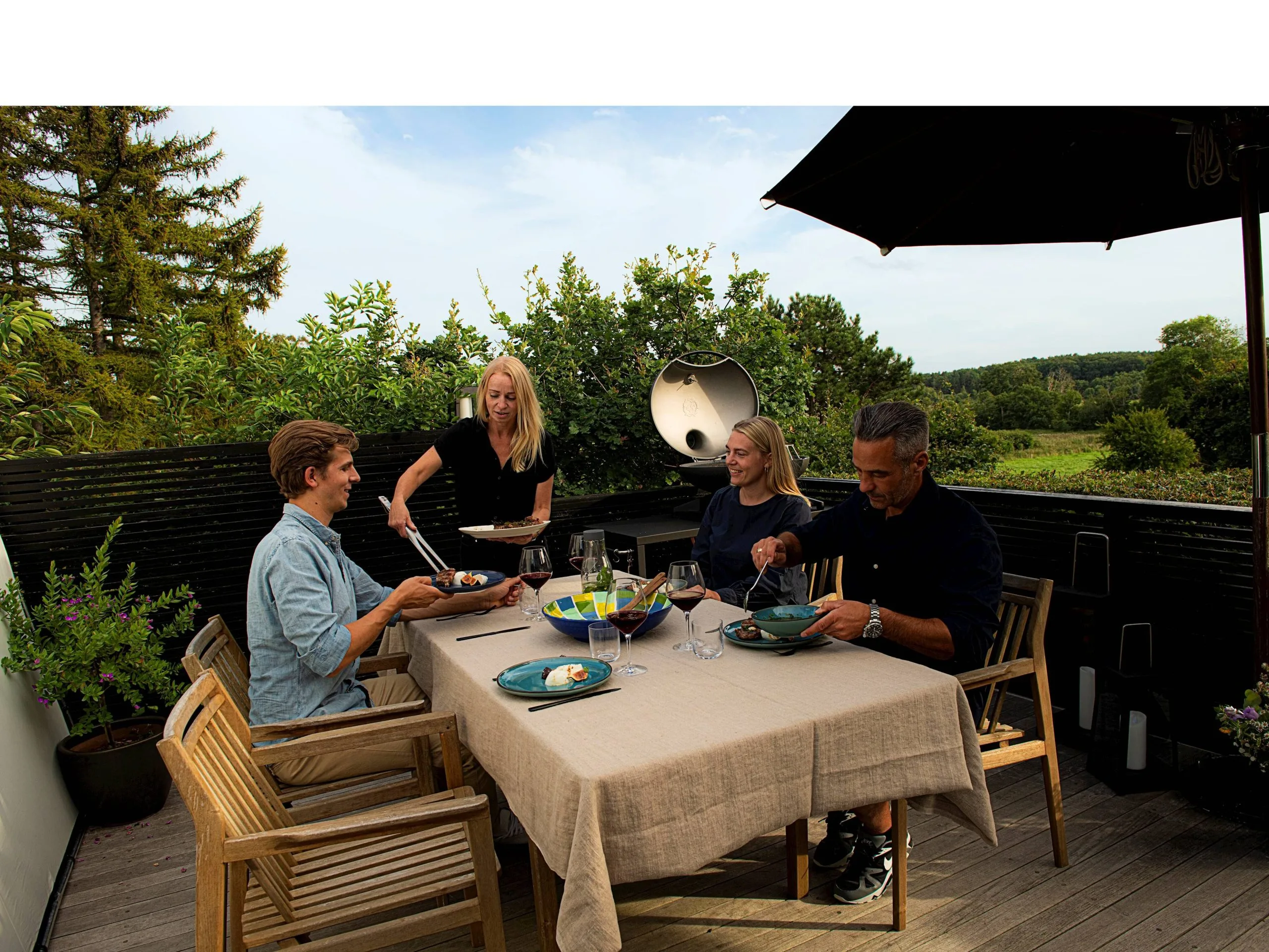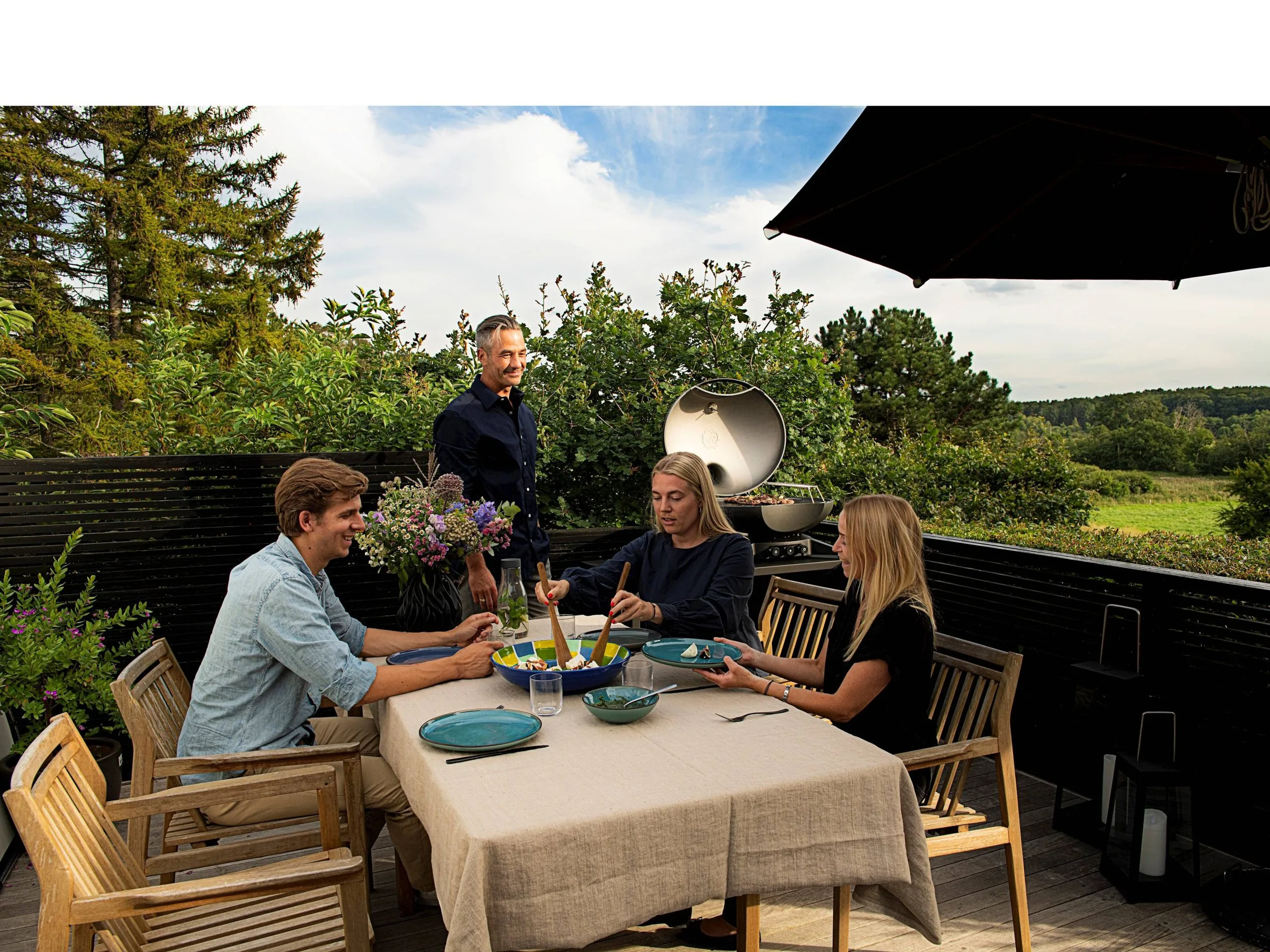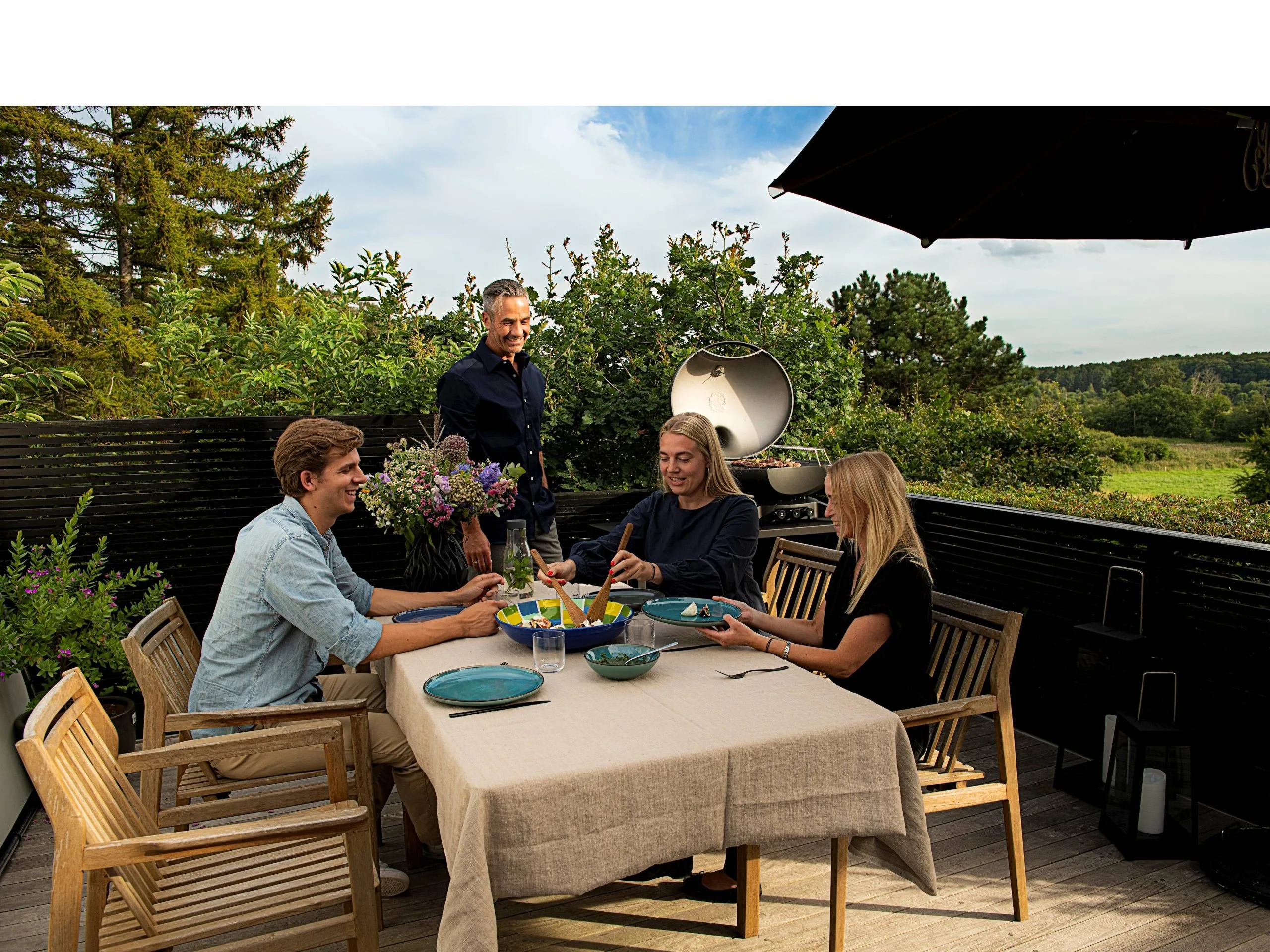 Det minimalistiske greb fuldender formens front, både designmæssigt og ergonomisk. Samtidig giver det fire-benede understel grillen et stabilt fundament, som helt naturligt og diskret danner rum for både betjeningspanel og gastilslutningen.