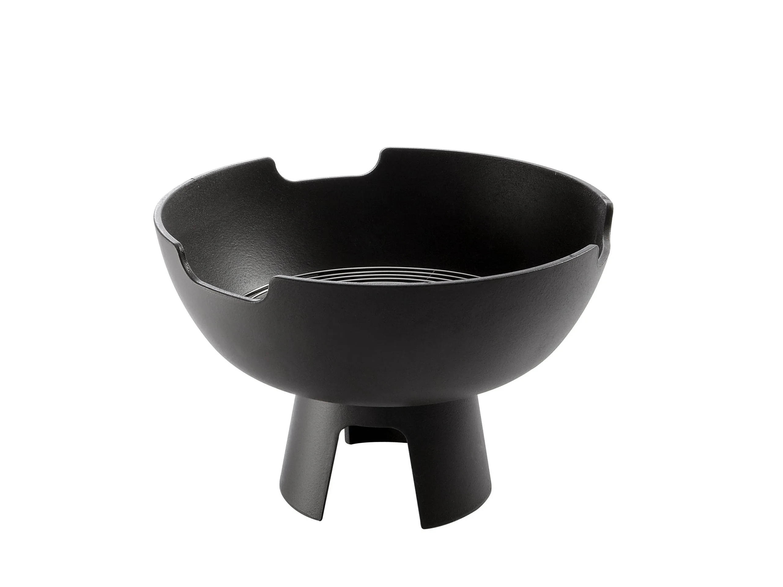 Fremstillet i sortmalet støbejern med bundrist i rustfrit stål. Velegnet som hyggelys, bålsted og terrassevarmer. Kan også bruges som grill ved benyttelse af grillristen. Velegnet til brænde.