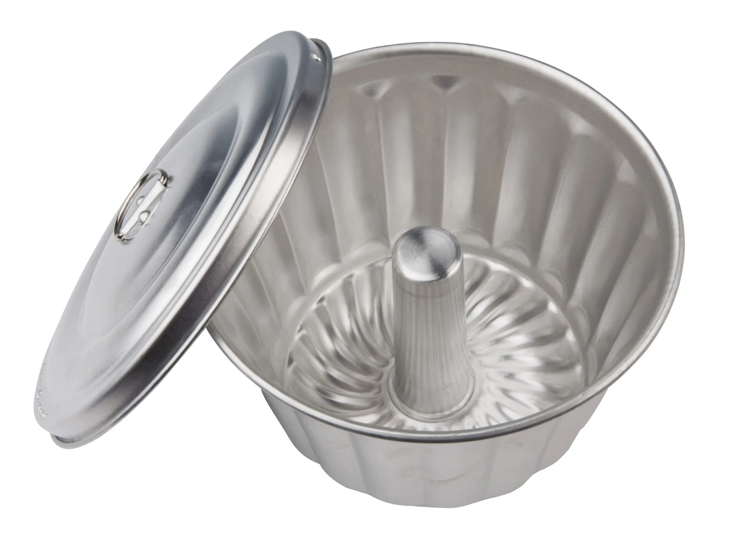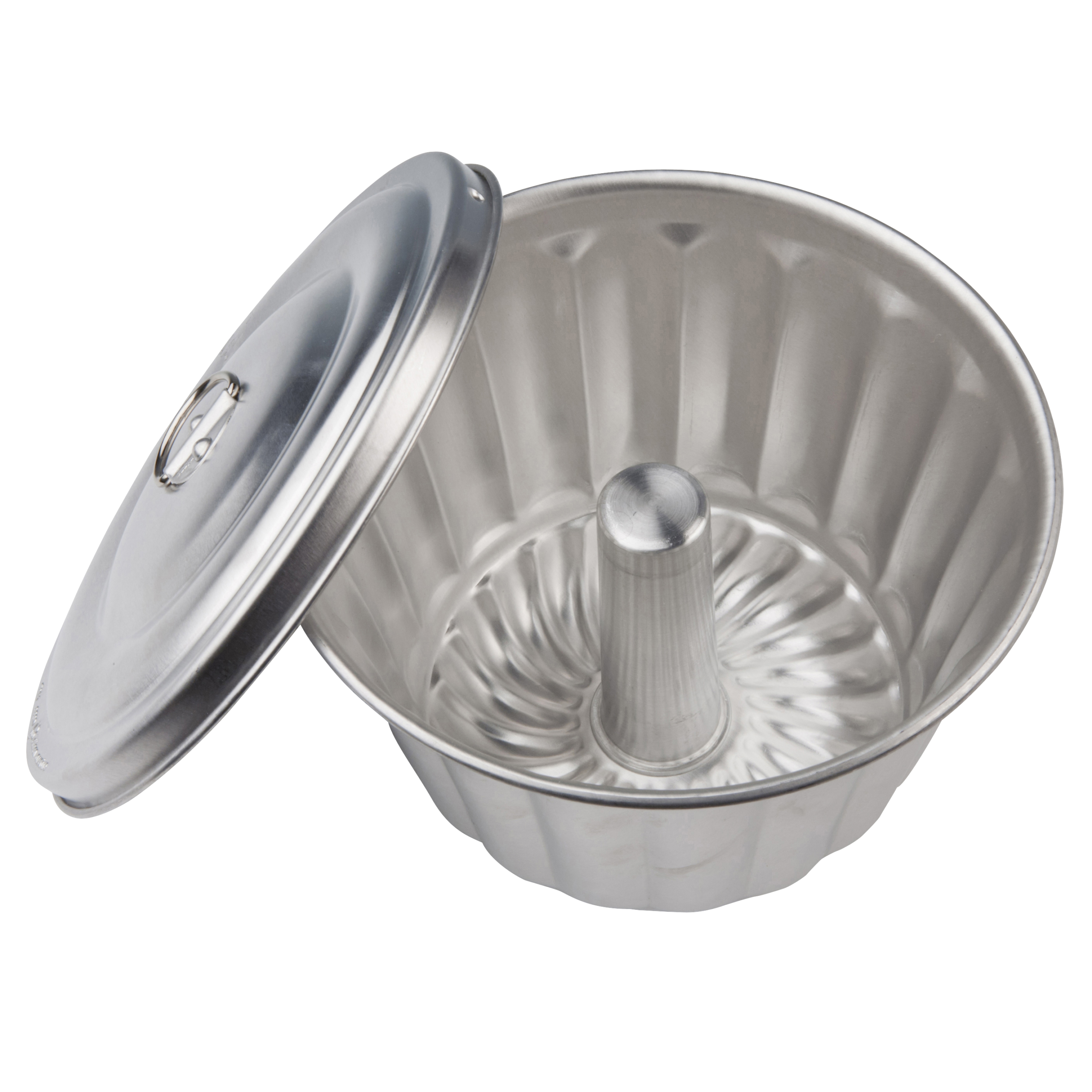 Buddingform i fortinnet aluminium, som kan rumme op til 2 liter. Perfekt til budding og fløderand, men også velegnet til en lækker sandkage eller mazarinkage. Med praktisk hul i formen, så midten kan fyldes op med frugt eller lignende ved servering. Låg medfølger. Tåler maskinopvask.