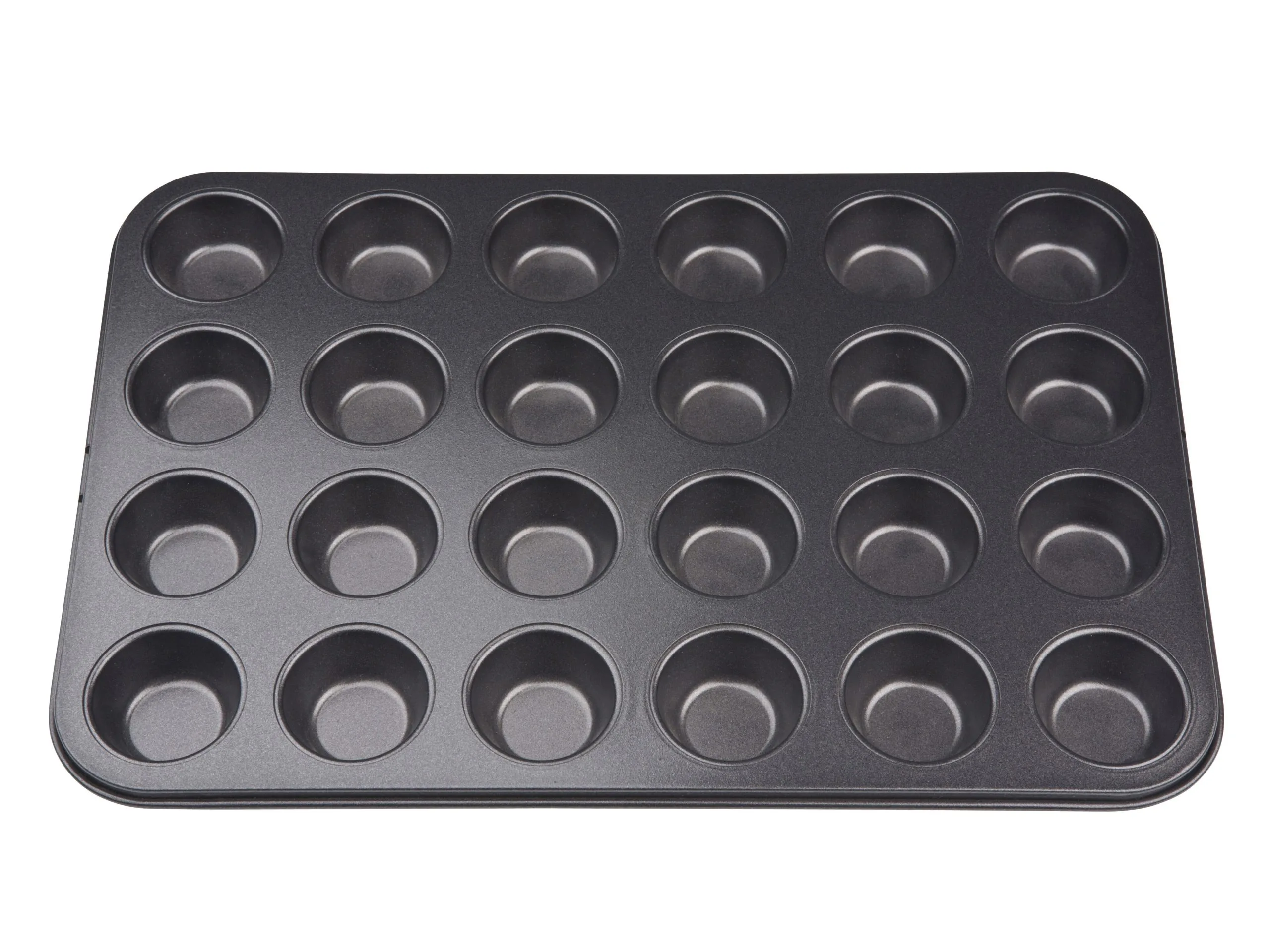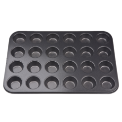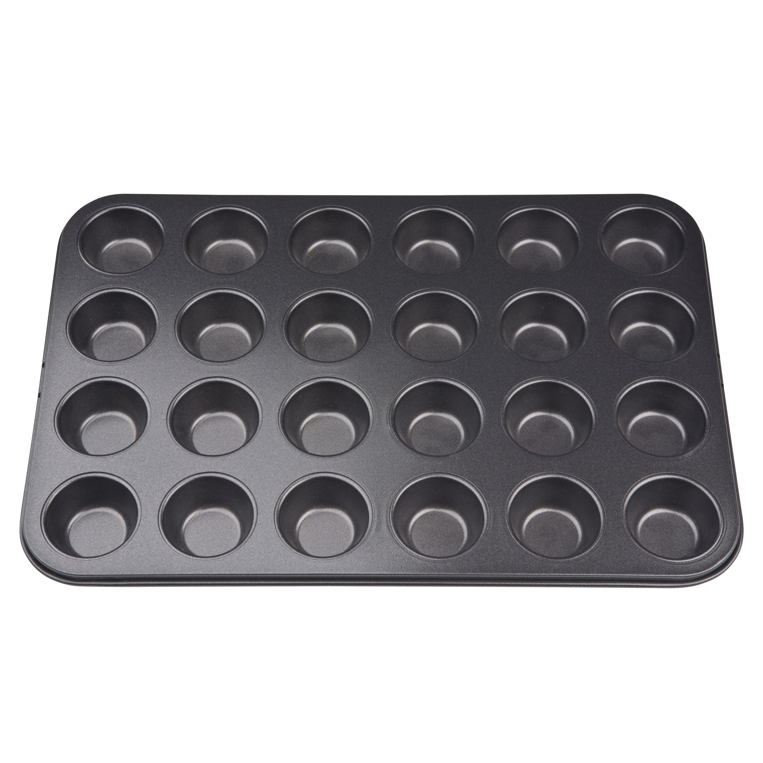 Muffinform til 24 stk. med non-stick-belægning. Tåler temperaturer op til 215 °C. Robust kvalitet produceret i 0,3 mm koldvalset stål, som sikrer en god varmefordeling. Perfekt til at bage små muffins til kagebordet. Kan gå i fryseren. Tåler ikke maskinopvask.