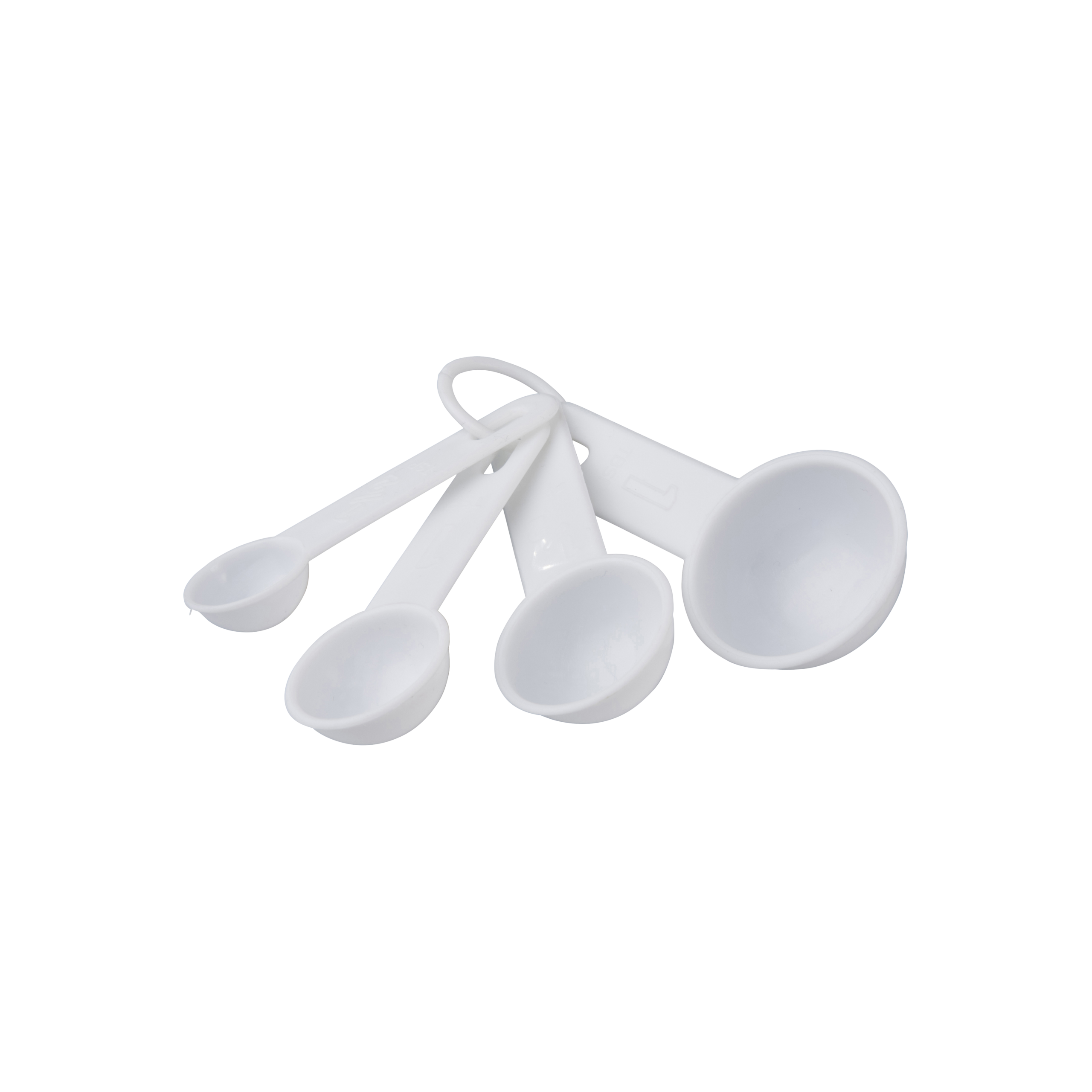 Praktisk måleskesæt i hvid plast. Uundværlig til at afmåle små, præcise mængder under din bagning. Sættet består af fire skeer med målene ½ tsk., 1 tsk., ½ spsk. og 1 spsk. Tåler maskinopvask.