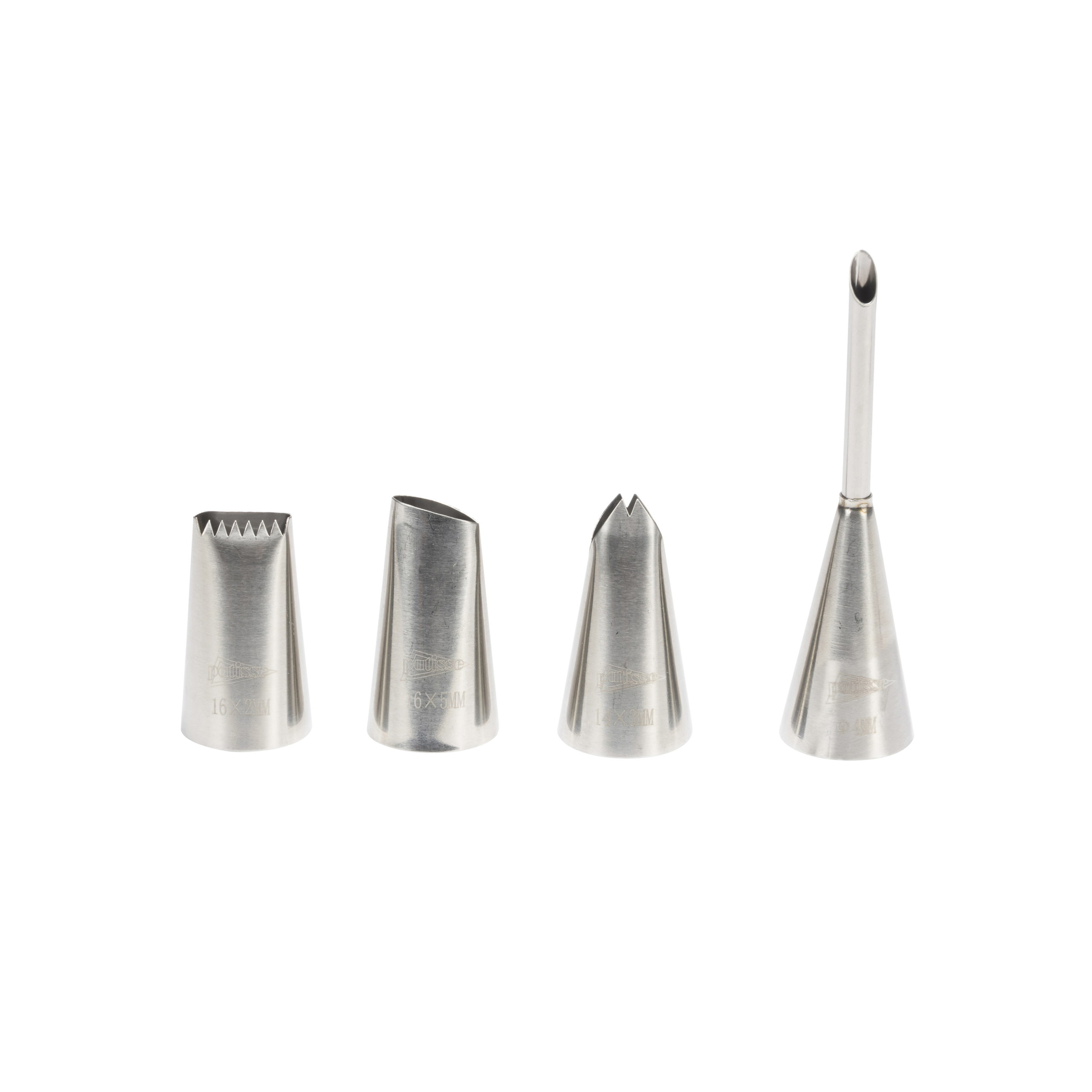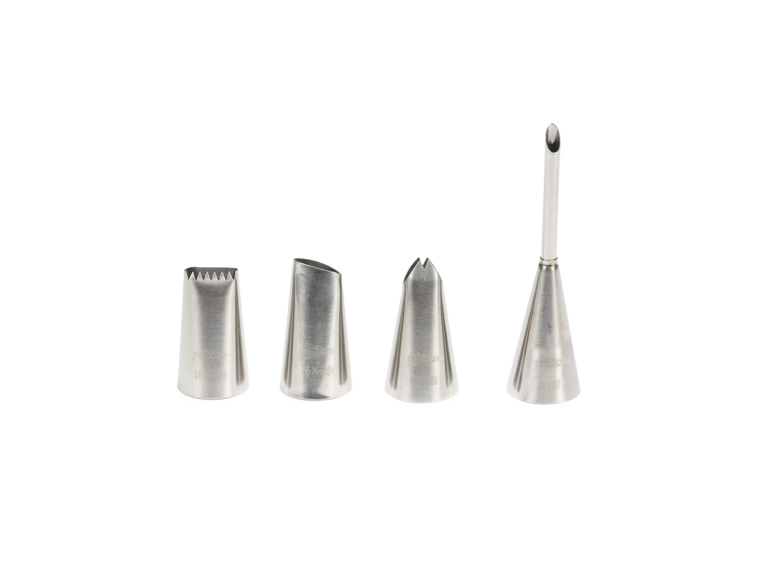 Dette tyllesæt består af 4 forskelligt formede tyller i rustfrit stål. Perfekt til at dekorere kager og desserter med forskellige smukke designs, så du kan imponere dine gæster ved festlige lejligheder. Tyllerne tåler maskinopvask.