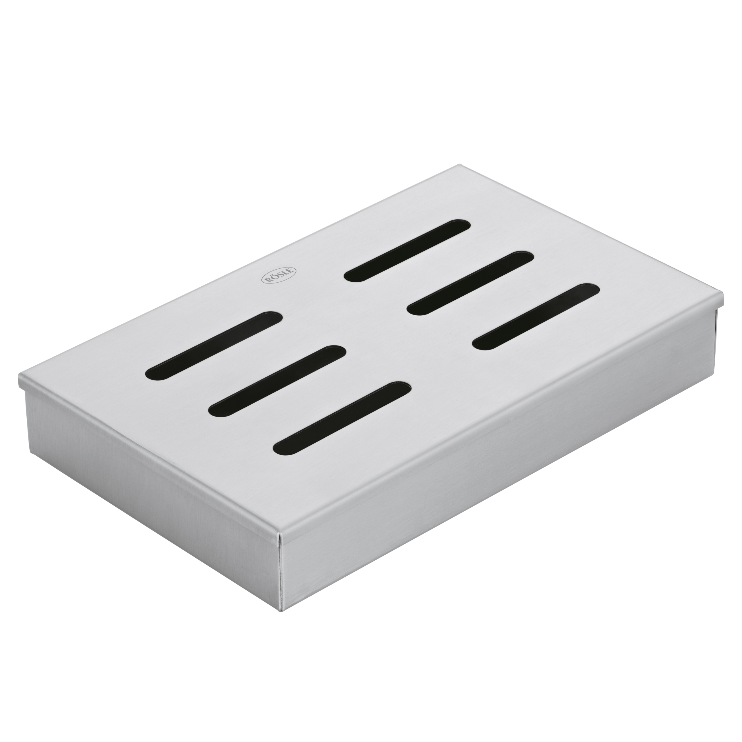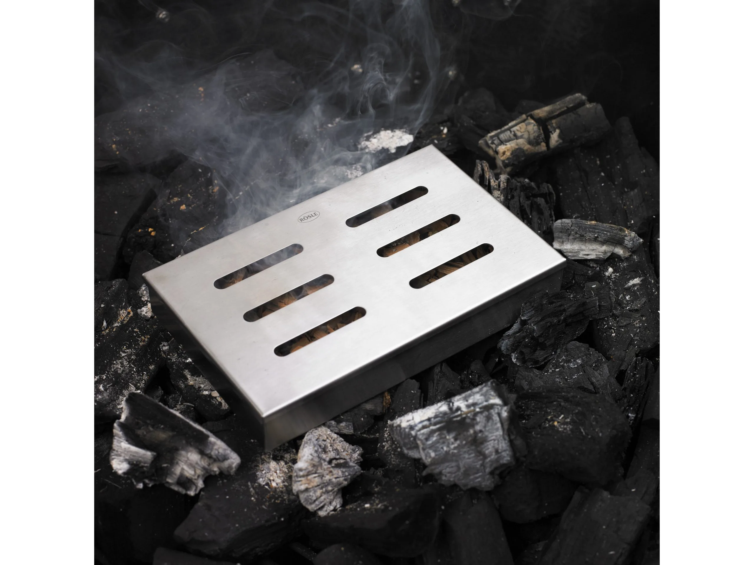 Røgboks med låg i rustfrit stål. Til rygning på grill og kulgrill. Giver kødet en røgfyldt, aromatisk smag. Kan bruges med flis, træpiller og røgsmuld.