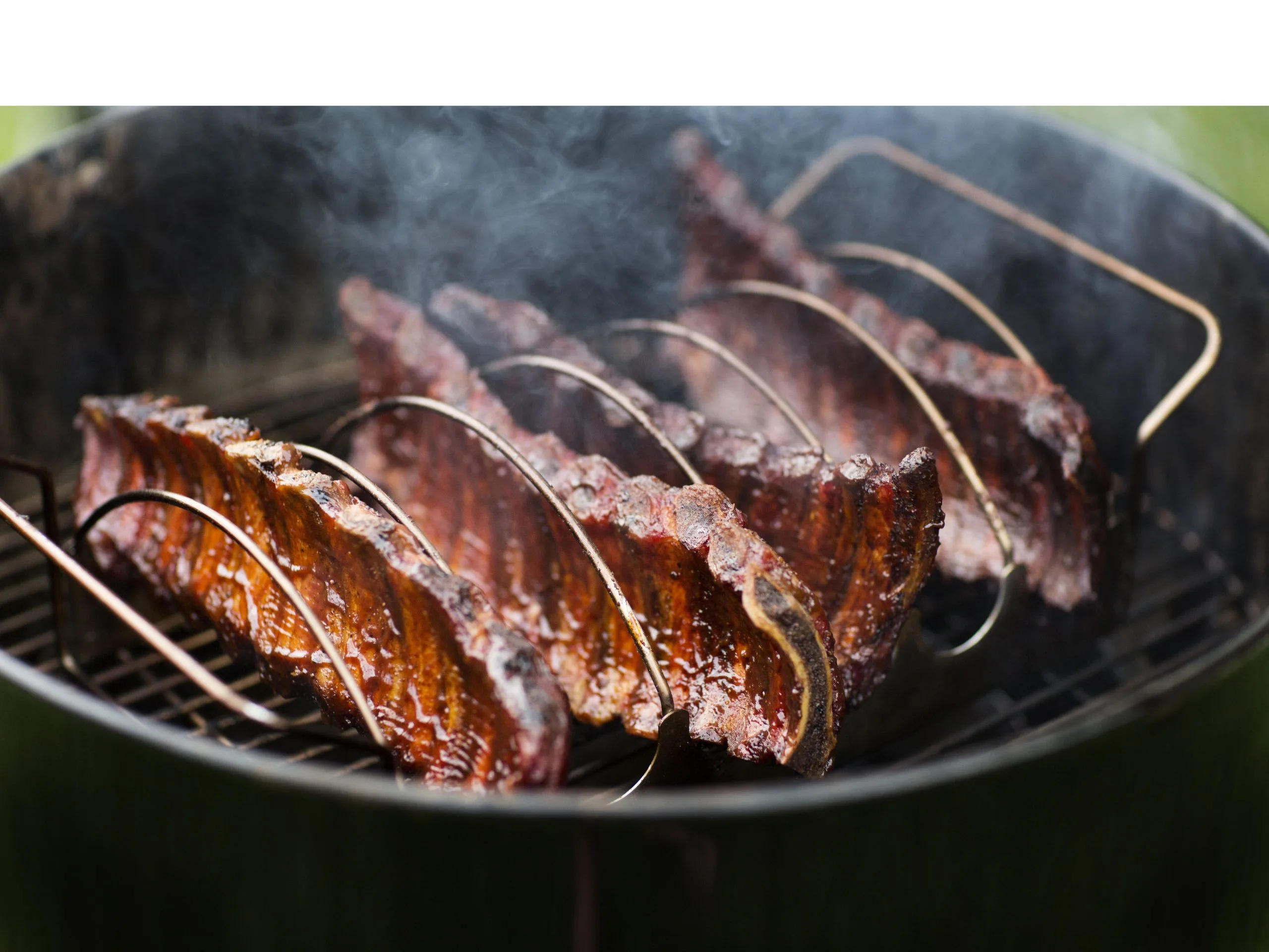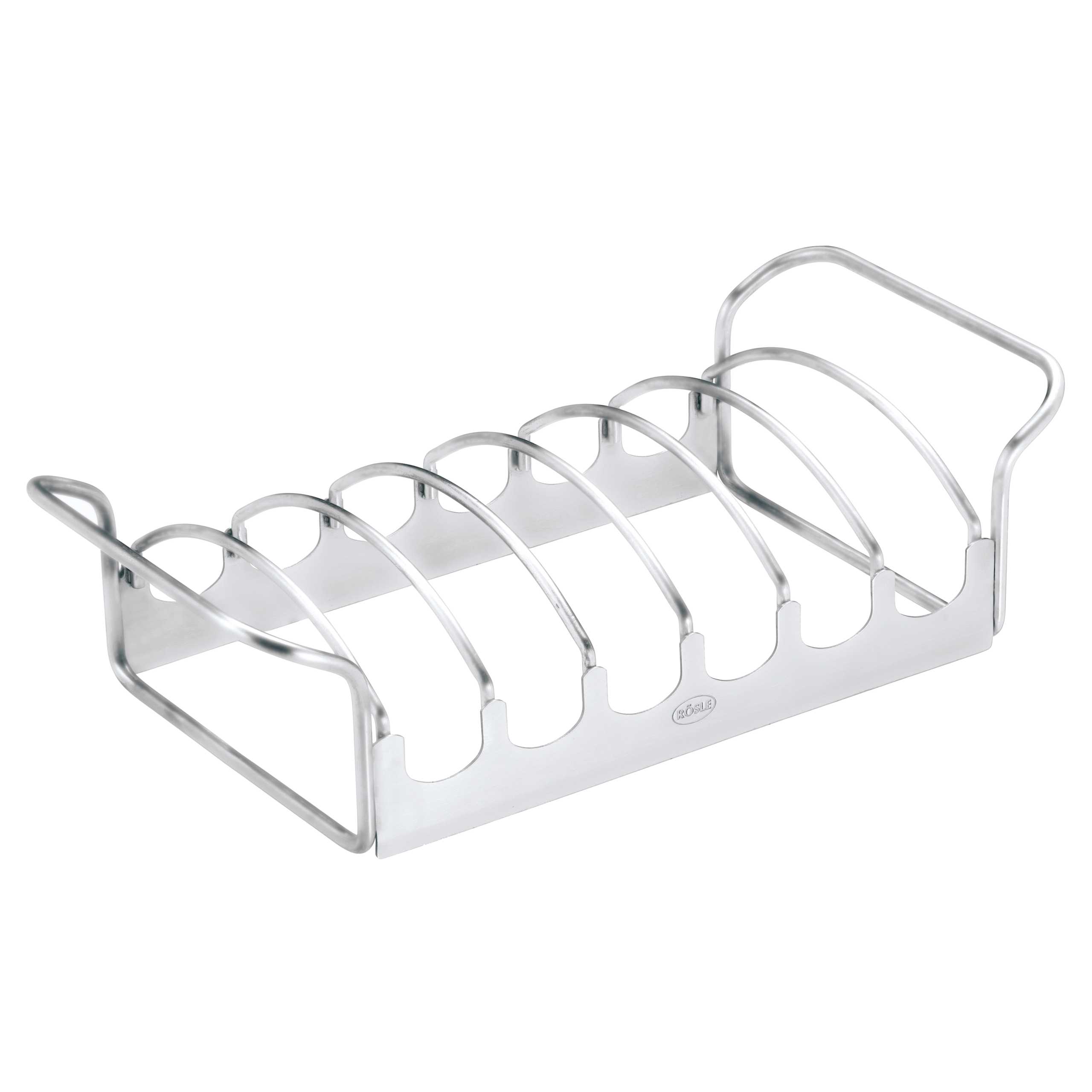 Spareribstativ til svinekoteletter og spareribs, der omdannes til en ristningskurv, når den vendes på hovedet. Hele stege kan transporteres sikkert i kurven. Med praktiske håndtag. Tåler opvaskemaskine.