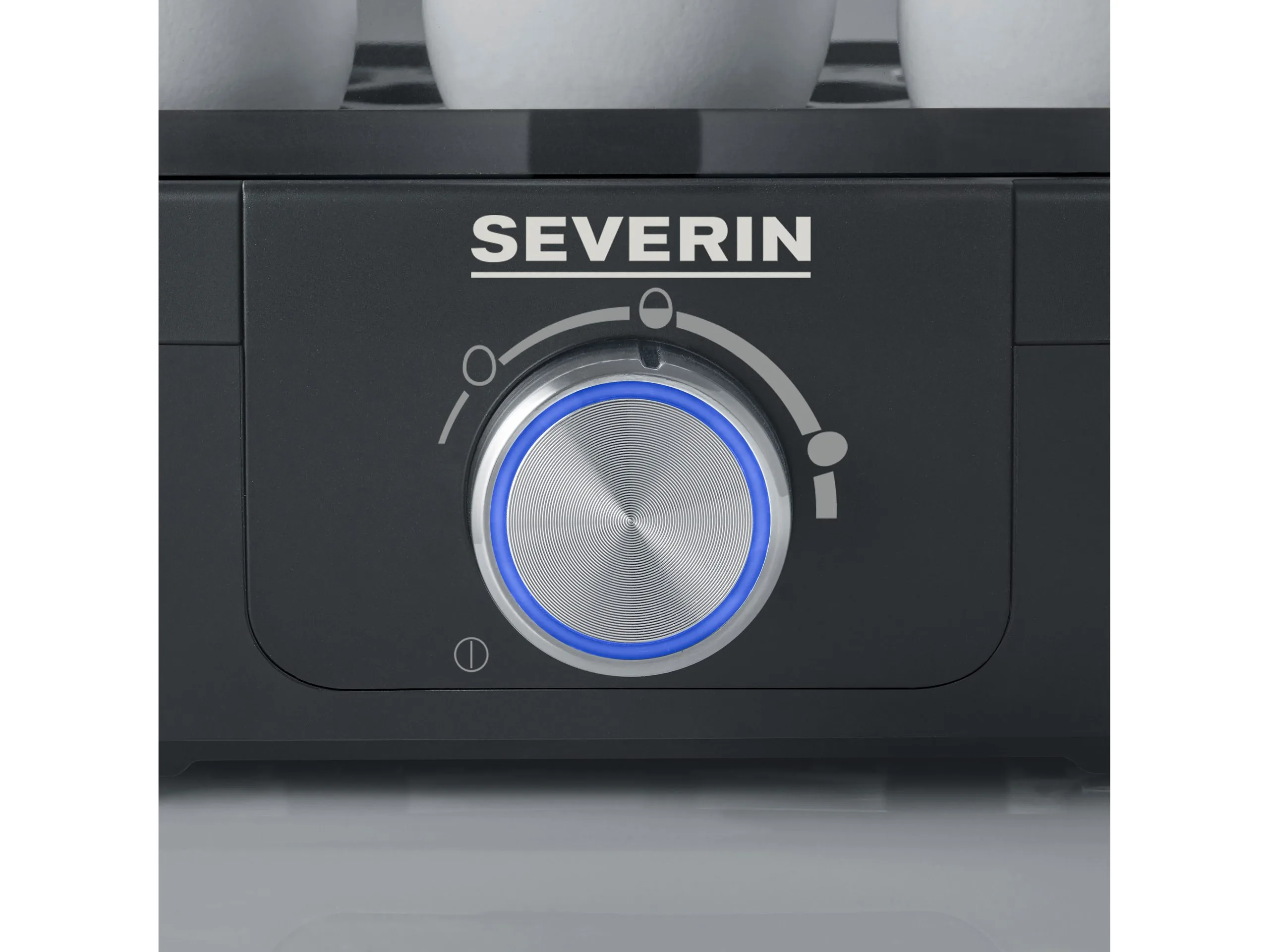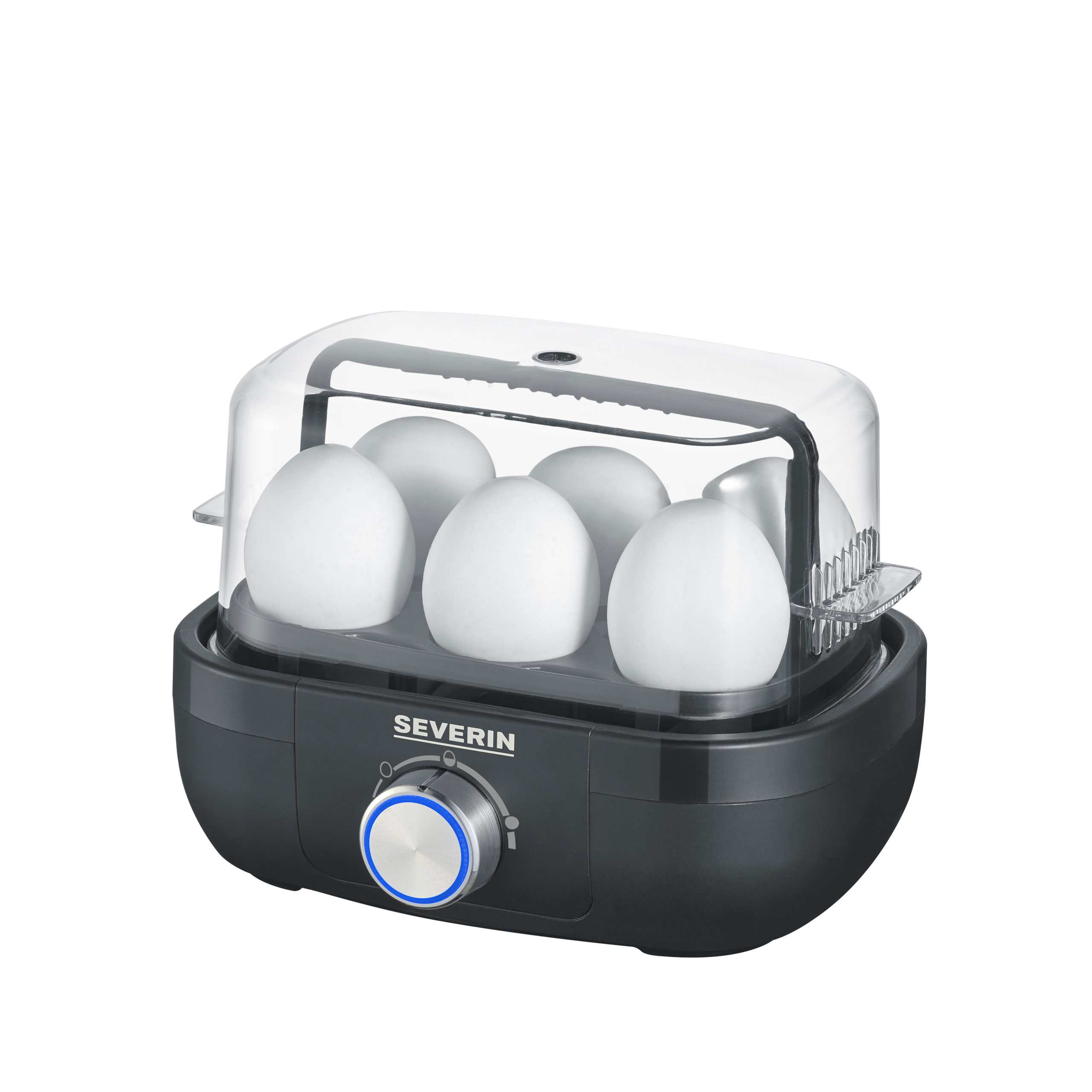 Æggekoger med plads til 6 æg. Justerbar indstilling for hårdhed, så du får dine æg præcis som du bedst kan lide dem. Alarmen giver dig besked, når æggene klar. Målebæger med æggeprikker medfølger. Låget er gennemsigtigt, så du nemt kan holde øje med æggene under tilberedning. 420 watt.