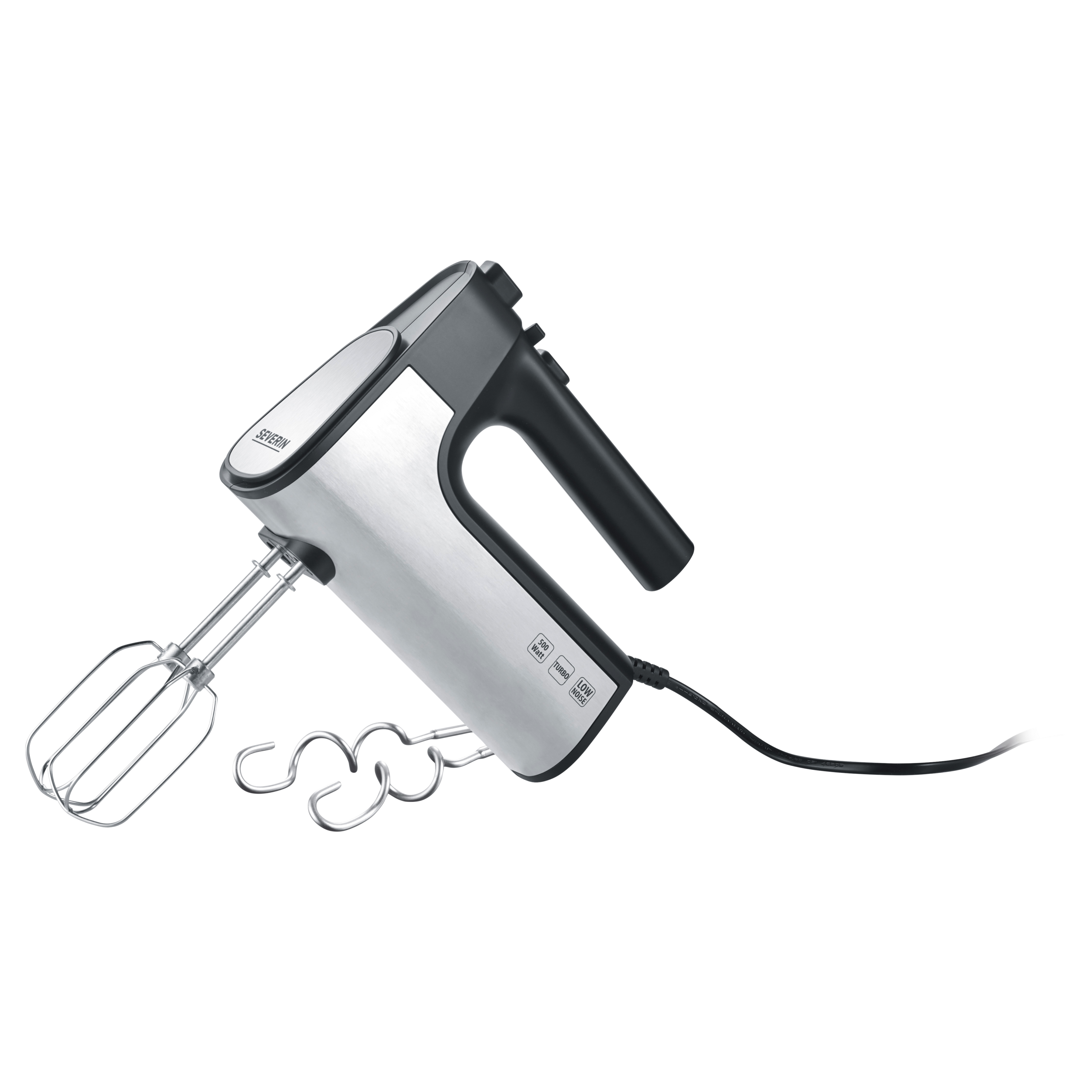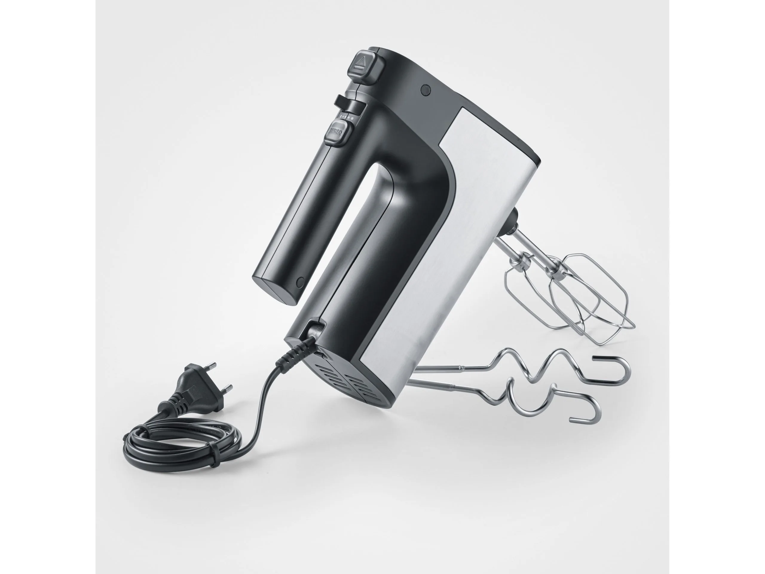 Støjsvag kvalitetshåndmixer i rustfrit stål med ergonomisk håndtag, kraftig 500 watt motor, 5 hastigheder samt turboindstilling. Mixeren giver perfekte resultater hver gang, ligegyldigt om du skal piske fløde til flødeskum, ælte en dej eller lignende. Inklusiv to piskeris og to dejkroge.
