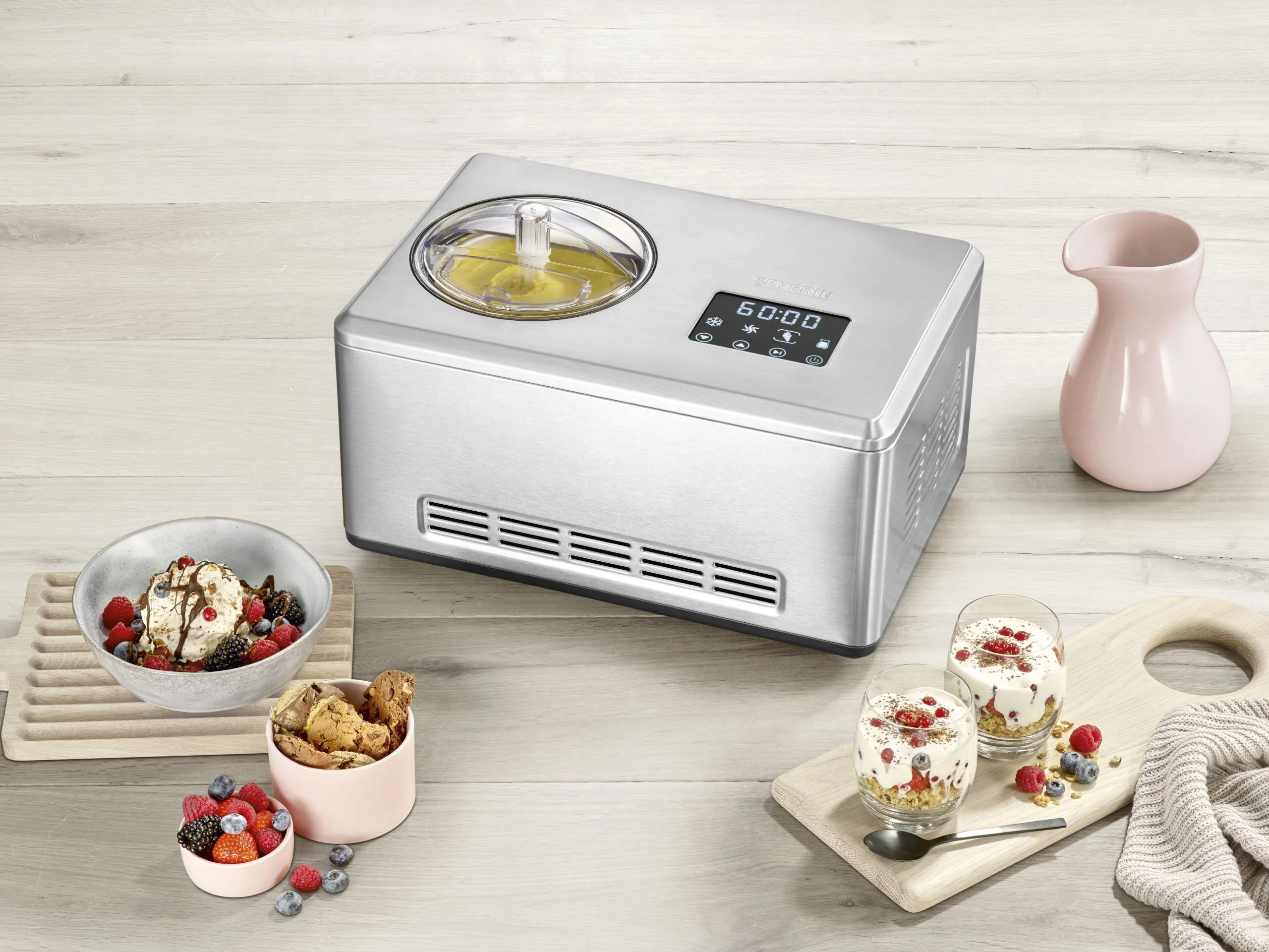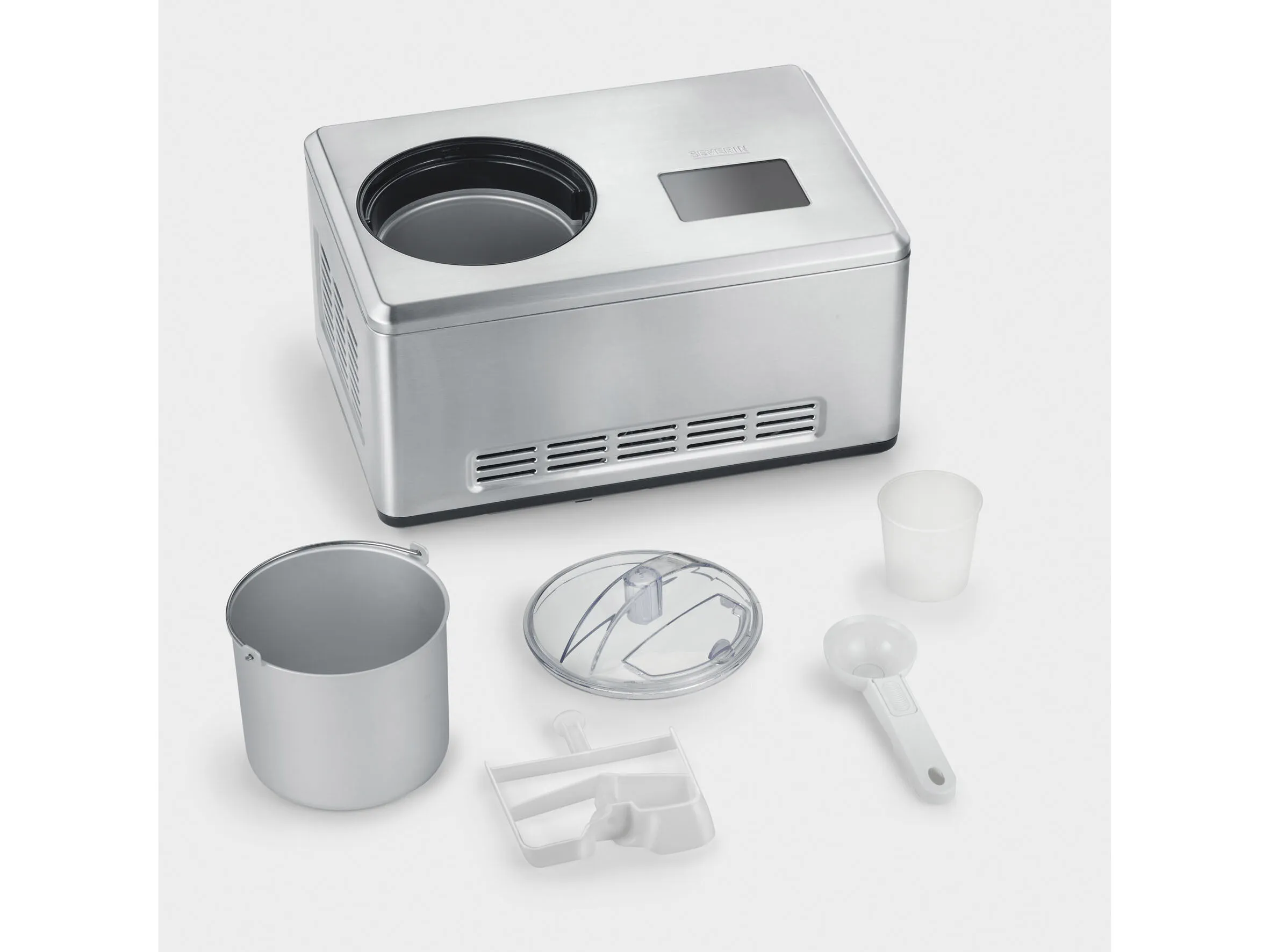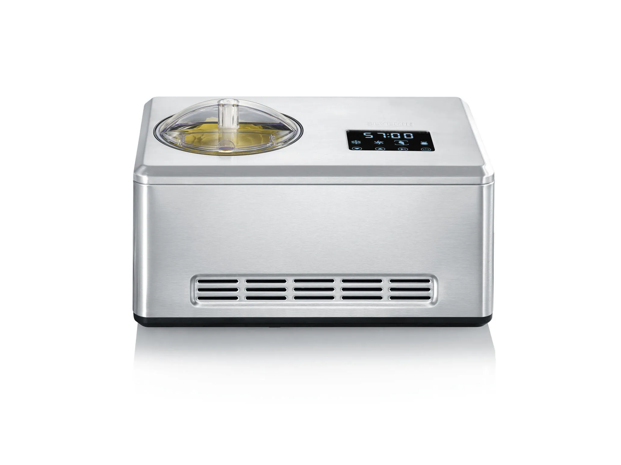 Severin EZ 7406 er en effektiv ismaskine, som på under 30 min. kan lave skønne hjemmelavede is-varianter eller yoghurt. Ismaskinen kan tages i brug med det samme, da kompressoren sikrer en hurtig nedkøling. Der medfølger to skåle med kapacitet på 2 liter. 180 W. Stål.