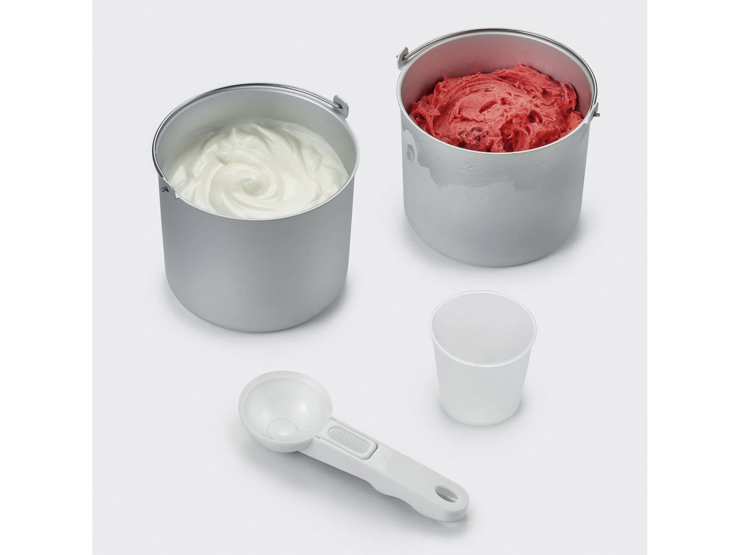 Med den smarte og innovative hot & cold-funktion kan du både lave is og yoghurt. Når yoghurten er færdig, bliver den automatisk nedkølet i maskinen. Til ismaskinen medfølger et målebæger og en iskugleske. Glæd dig til at lave uendelige is-varianter med dine yndlingssmage.