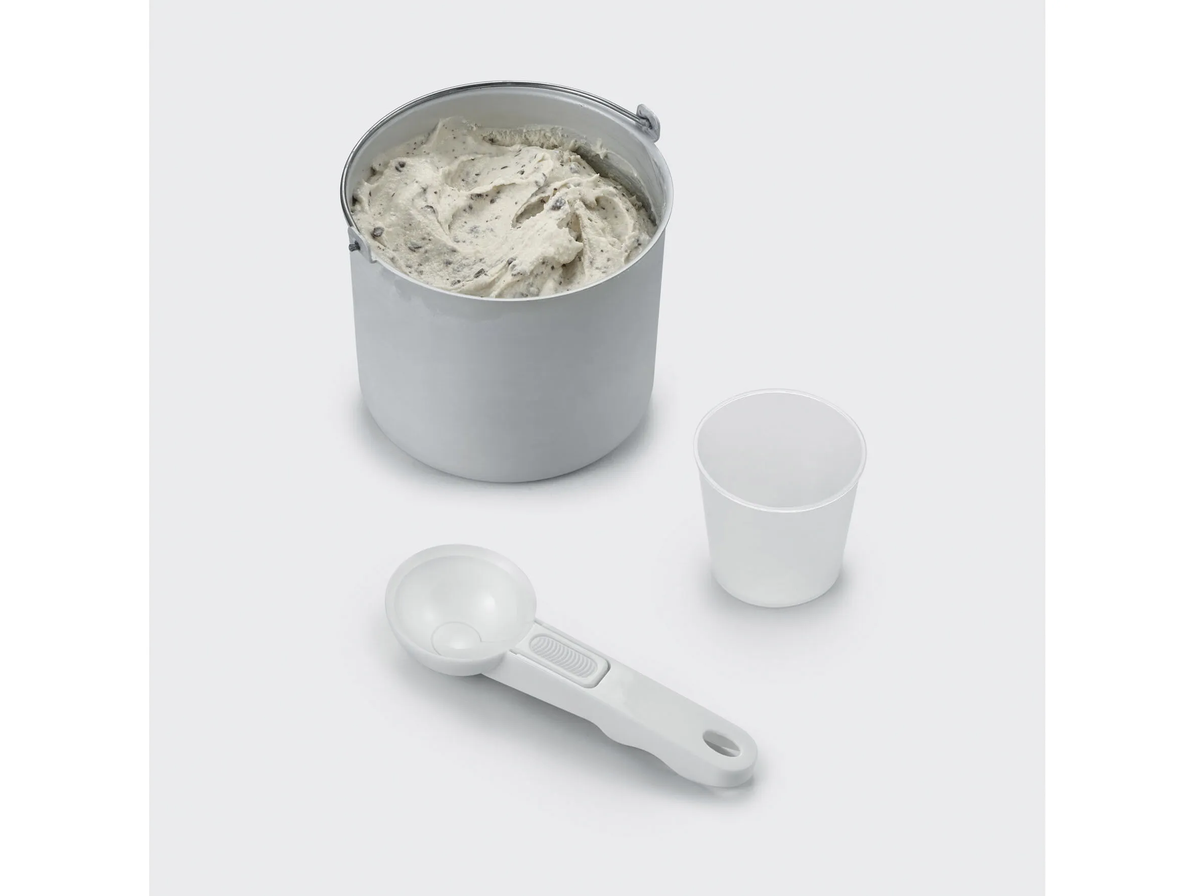 Med den smarte og innovative hot & cold-funktion kan du både lave is og yoghurt. Når yoghurten er færdig, bliver den automatisk nedkølet i maskinen. Til ismaskinen medfølger et målebæger og en iskugleske. Glæd dig til at lave uendelige is-varianter med dine yndlingssmage.