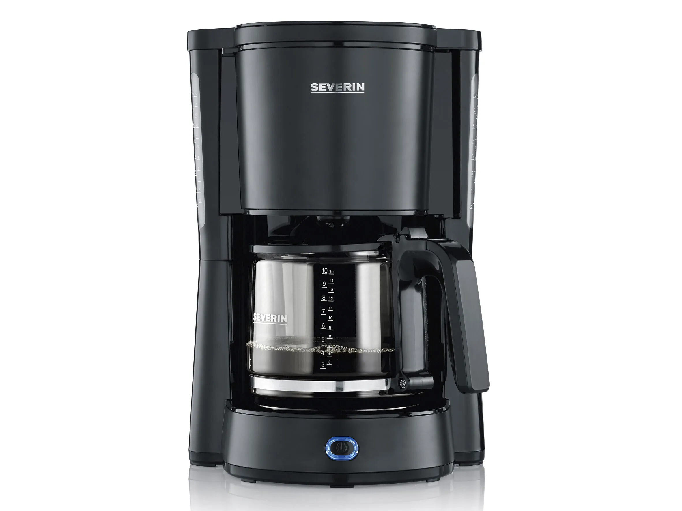 Bryg morgenkaffen hurtigt og lydløst på kaffemaskinen Severin KA 9554. Kaffemaskinen er nem at betjene og har tænd-/sluk-kontakt med kontrollys, automatisk sluk, vandstandsindikator og varmeplade med hold varm-funktion. 1000 W.