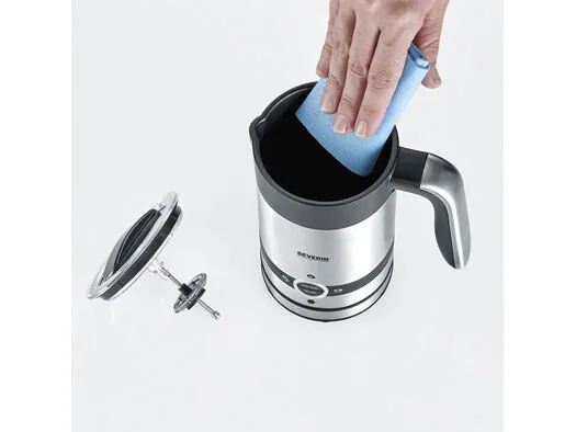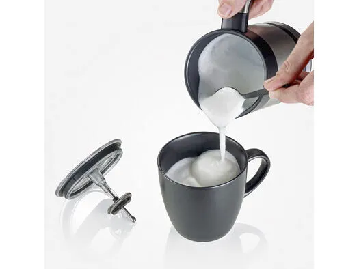 Mælkeskummer i børstet stål i høj kvalitet og flot design med sorte detaljer. Velegnet til kold og varm skumning samt opvarmning af mælk. Kapacitet 100 ml skum eller 200 ml varm mælk. Beholderen har non-stick belægning og er let at gøre ren. 450 watt.