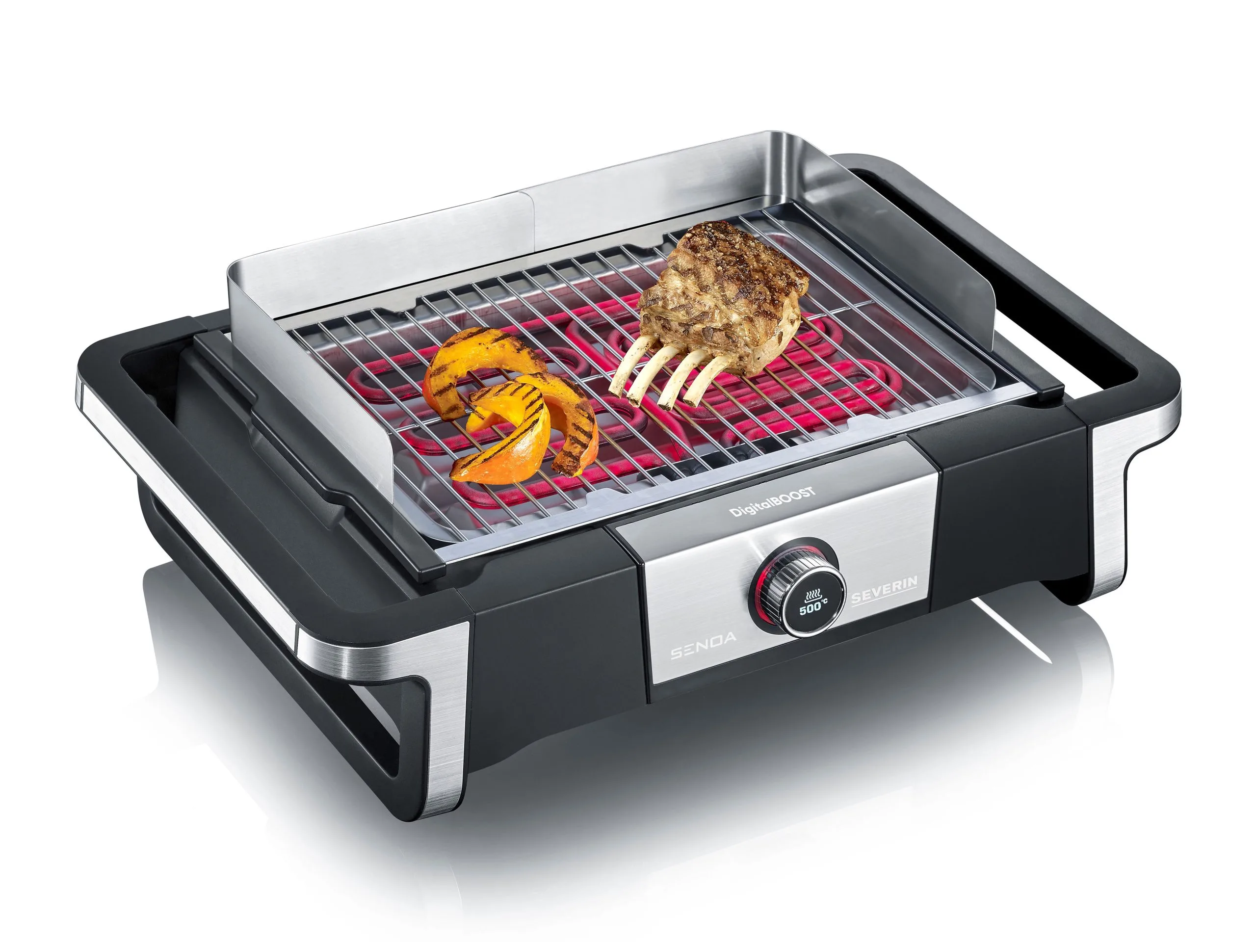 Smart elektrisk bordgrill til både indendørs og udendørs brug. Med Safetouch-kabinettet kan grillen bruges på alle overflader. Boost-funktionen giver hurtig grillstart fra 0 til 500 grader på kun 10 minutter. LED-display og integreret termometer. Let at skille ad og rengøre. 3000 watt.