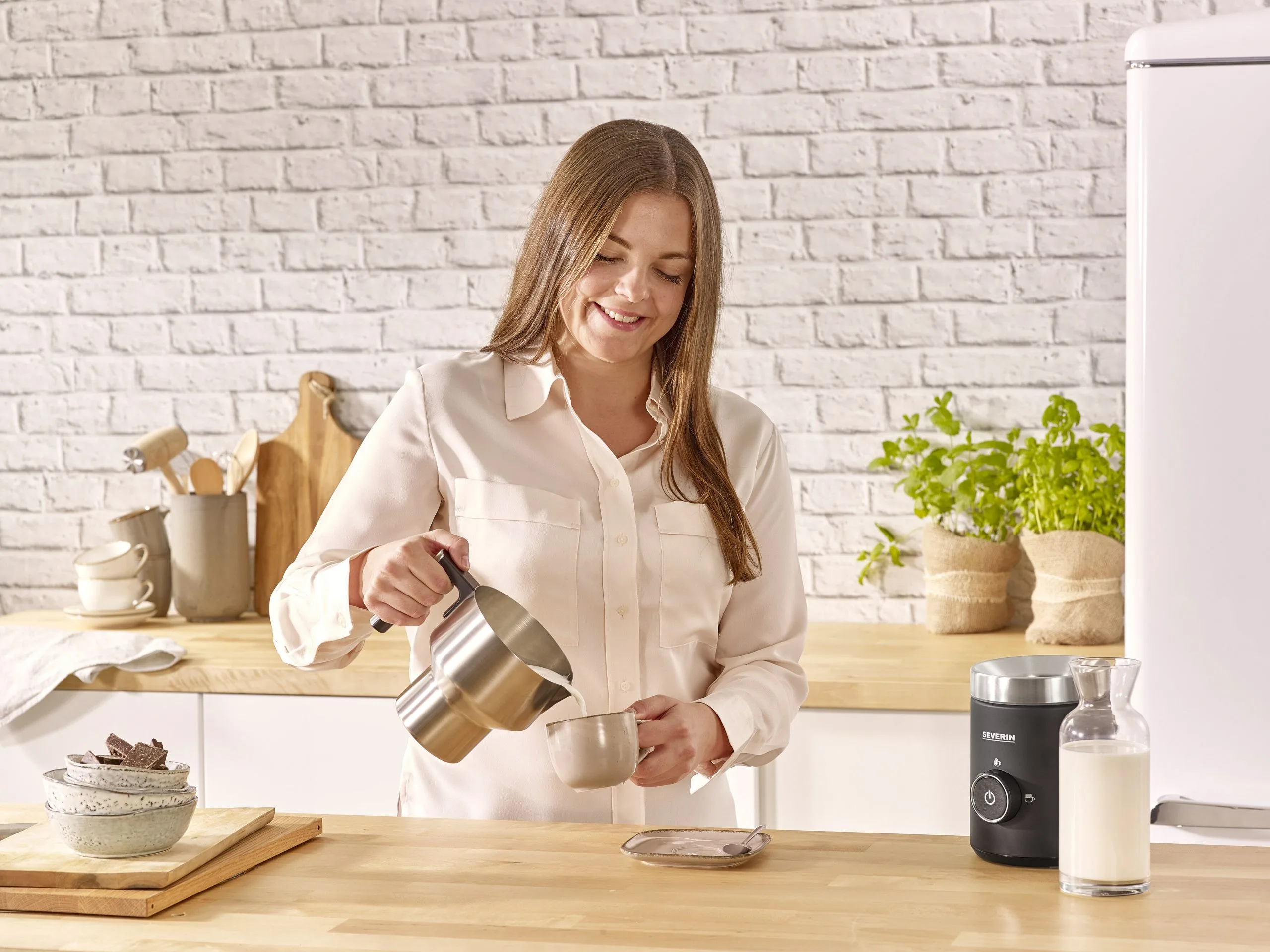 Den store mælkebeholder i rustfrit stål er ideel til skumning af 120-260 ml mælk eller opvarmning af 120-500 ml mælk.